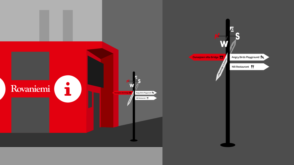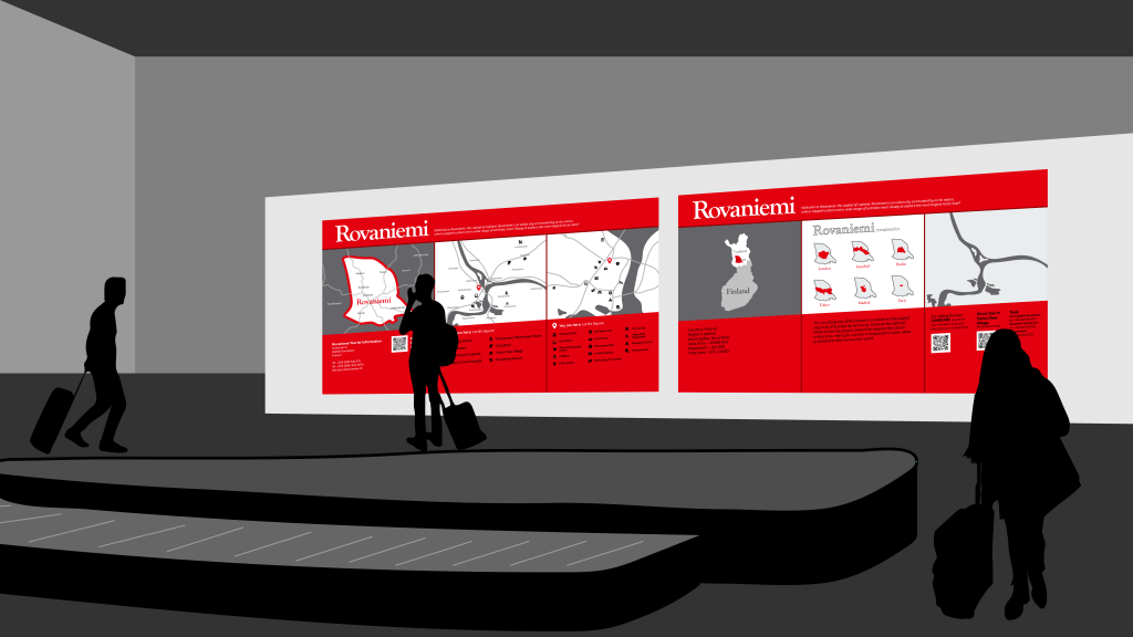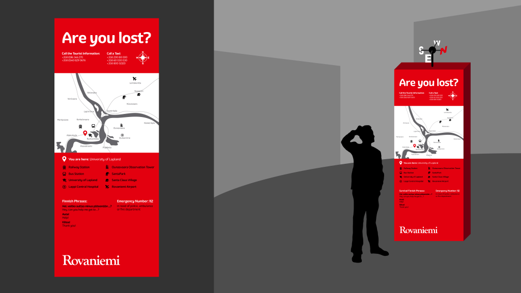 Probably the most intense class I took, but also the most informative. It was all about getting ourselves familiar with wayfinding and signage design, while tackling the obvious problems of Rovaniemi, a greatly poor wayfinding system for tourists. One thing I noticed about the education here is that it almost never only involves sitting on a chair while being lectured by the professor.